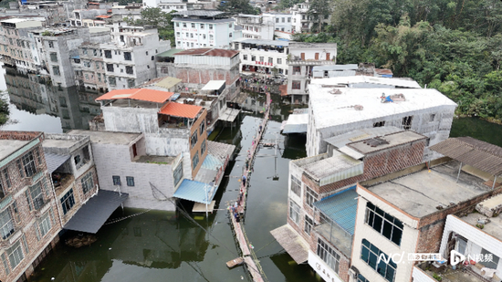广西本地媒体10月17日报道,大进屯共有80户人家,共有74户房屋被淹,积水最深处仍有4米多。