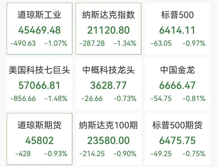 3月27日,美股三大指数集体低开低走,截至发稿,道指跌1.07%,标普500指数跌0.97%,纳指跌1.34%。