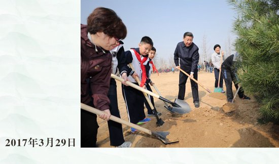 率先垂范、身体力行。此后13个春天,习近平总书记坚持同干部群众一起参加义务植树活动。永定河畔的滨水绿廊,城市副中心的绿心公园,产业疏解后改造的开放绿地,环境整治后打造的生态空间,都曾见证总书记躬身植绿的身影。